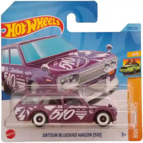 A Mattel Hot Wheels Datsun Bluebird Wagon (510) 1:64 méretarányú kisautóval izgalmas versenyeket rendezhetsz. A szépen kidolgozott részletek még valósághűbb játékot kínálnak a gyerekeknek és még nagyobb értéket a gyűjtőknek.