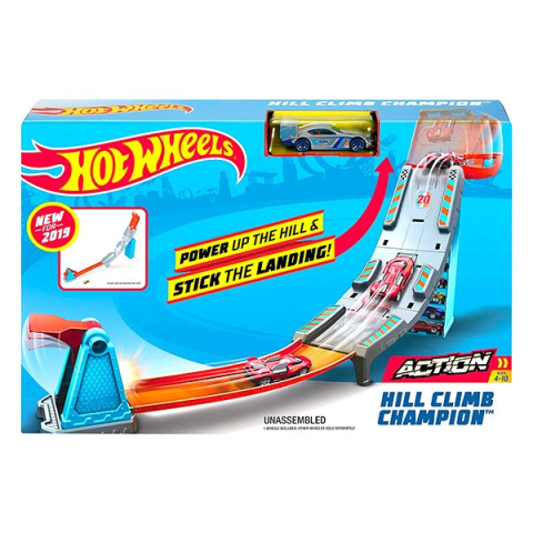 Hot Wheels hegymászó bajnokság pályaszett. A gyerekek átélhetik a versenyzés szellemét és fejleszthetik képességeiket a közös játék során. Három kihívást tartalmaz a szett: egy sodródó pályát, kilövő állomást és egy merész hegymenetet. A csomag a pálya elemeket kívül 1 db kisautót tartalmaz. Az emelkedő alatt pedig praktikus garázsrendszer van kialakítva a versenyzőknek.Csomagolási méretek: 38 x 26 x 8 cm