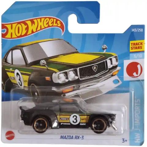 A Mattel Hot Wheels Mazda RX-3 1:64 méretarányú kisautóval izgalmas versenyeket rendezhetsz. A szépen kidolgozott részletek még valósághűbb játékot kínálnak a gyerekeknek és még nagyobb értéket a gyűjtőknek.