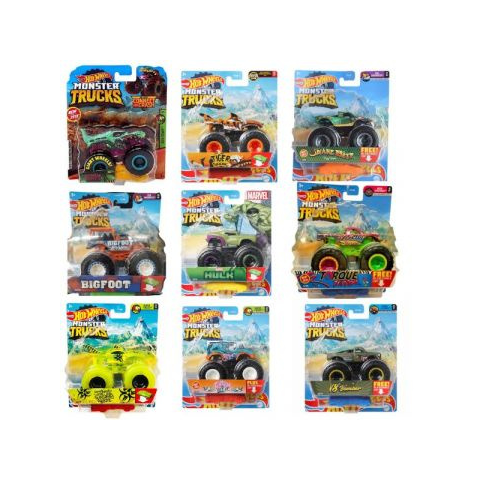 A Hot Wheels Monster Trucks 1:64 arányú, öntött fém autói a legvadabbak a versenyzésre és totális győzelemre épített autók között! ÓRIÁS kerekeikkel felkészültek a fej-fej melletti csatákra! Az ár 1 db termékre vonatkozik.