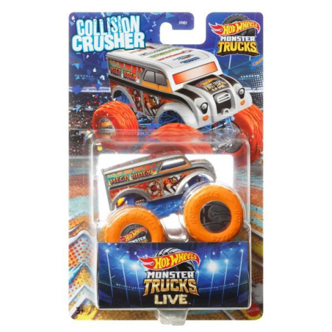A Hot Wheels Monster Trucks kisautónak nincs párja, ha versenyről, trükkökről és főleg, ha zúzásról van szó. Óriási kerekei nagy előnyt adnak nekik az autó-autó elleni küzdelmekben. A Hot Wheels Monster Trucks Live kisautó egy egyedi karakter és egy igazi zúzógép, lételeme az ütközés, amit szeret bemutatni mindenkinek. Jaj annak, aki versenyre kel vele.Csomagolás mérete: 14 x 16 x 7 cm