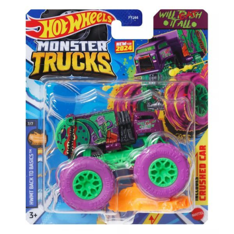 A Hot Wheels Monster Trucks 1:64 méretarányú kisautóinak nincs párja, ha versenyről, trükkökről vagy zúzásról van szó!Óriási kerekeik nagy előnyt adnak nekik az autó-autó elleni küzdelmekben. Minden járgány dobozában megtalálható egy gyűjthető kerék is, amely segítségével a gyerekek megismerhetik az autók részletes adatait is, beleértve a járgányok nevét, típusát, erősségeit, sajátos trükkjeit és specialitásait.Webáruházunkban további Hot Wheels Mon