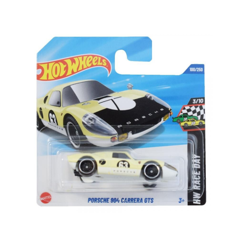 A Hot Wheels Porsche 904 Carrera GTS egy igazi klasszikus versenyautó, amely visszarepít a motorsport aranykorába! Ez a modellautó hűen megjeleníti a legendás 904 Carrera GTS elegáns vonalait, sárgásfehér és fekete színkombinációjával pedig lenyűgözően stílusos. A „63”-as rajtszám és a Porsche logó az autó sportos múltját idézi, míg a részletga
