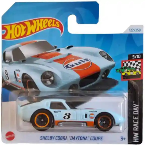 A Mattel Hot Wheels Shelby Cobra Daytona Coupe 1:64 méretarányú kisautóval izgalmas versenyeket rendezhetsz. A szépen kidolgozott részletek még valósághűbb játékot kínálnak a gyerekeknek és még nagyobb értéket a gyűjtőknek.