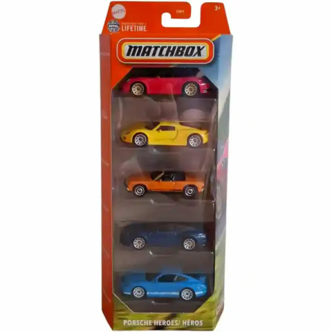 Matchbox 5 Porsche Heroes/Héros kisautók: az 5db, 1:64 méretarányú kisautót tartalmazó kollekciójával bármikor megtalálhatod a pályára legalkalmasabb járművet. A szépen kidolgozott részletek még valósághűbb játékot kínálnak a gyerekeknek és még nagyobb ér