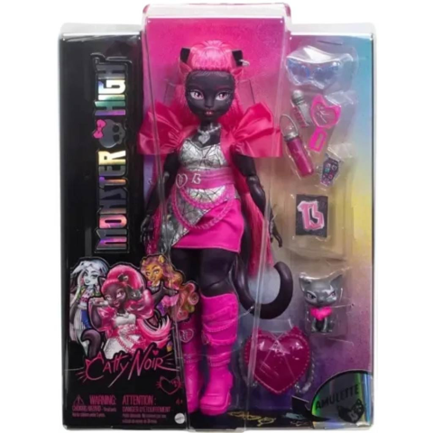 Monster High bemutatja Catty Noir-t a doromboló popsztárt, aki hisz a babonák és a zene erejében, hogy egyesítse a szörnyeket! Catty Noir, a ragyogó macskalány, igazi sztár, aki kísértetiesen glamour stílusban hódítja meg a színpadot. Egyedi megjele
