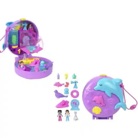 Készülj fel a vidám, vizes kalandokra a Polly Pocket delfinmentő játékkészlettel, ami tökéletes otthoni vagy utazás közbeni játékra! Ennek a készletnek két imádnivaló delfin van a külsején (a kisebb delfin lassan visszaálló, nyomkodható habból készült), a