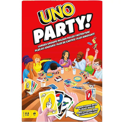 Az UNO Party a klasszikus UNO társasjáték új, izgalmas változata, amelyet kifejezetten nagyobb társaságok számára terveztek! Vadabb szabályok, őrületesebb akciók és még több nevetés vár rád ebben a színes és lendületes játékban, amely akár 14 játékosnak is fantasztikus szórakozást nyújt.