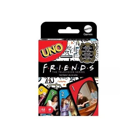 Az UNO-val való játék összehozza a jóbarátokat! A világ egyik legnépszerűbb kártyajátéka olyan egyszerű, amilyen nagyszerű és a különleges megjelenését most a népszerű Jóbarátok sorozat ihlette. A játék célja, hogy megszabadulj a kezedben lévő lapoktól. Ehhez figyelni kell, milyen színű és számú kártya van a dobópakli tetején, hiszen csak ahhoz illeszkedőt tehetsz le. A játékot az akciókártyák és a különleges karakterekkel ellátott speciális kárty