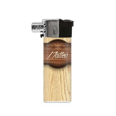 1 kép Matteo újratölthető pipa öngyújtó oldalsó lánggal - Világosbarna fa mintás