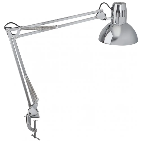 Asztali lámpa, energiatakarékos, felfogatható, MAUL Study, ezüst klasszikus dizájn foglalat: E27 (max. 60 W-os izzóval) a fényforrás nem tartozék asztalra felfogatóval a fémkart 360°-kal lehet elforgatni magasság normál munkahelyzetben 51 cm karhossz a