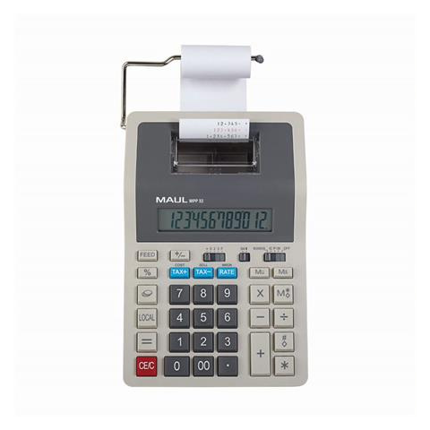 Univerzális szalagos számológép minden fontos funkcióval MAUL minőségben. -12 számjegyes, 1 soros LCD kijelző -funkcióbillentyűk és számbillentyűk különböző színűek, a gyorsabb megtalálás érdekében -számítógép szerű billentyűzet -2 színű nyomtatás nyomtataási sebesség: 2 sor/másodperc -memória - 00 gomb -százalékszámítás -üzleti számítások és ÁFA számítás -beállítható pénznem programozható árfolyammal -kerekítés funkció (felfelé/le