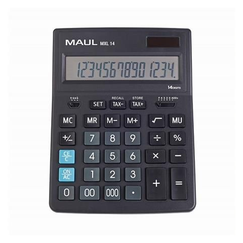 Kereskedelmi asztali számológép, erős, stabil és robusztus, extra nagy házzal.-14 számjegyes, nagy döntött 1 soros LCD kijelző (126,5x26,5 mm)-funkcióbillentyűk és számbillentyűk különböző színűek, a gyorsabb megtalálás érdekében- memória-"00" gomb-"000" gomb-törlés gomb (utolsó számjegy törlése)-százalékszámítás-ÁFA számítás-kiválasztható, hogy hány tizedes jegy jelenjen meg-automatikus kerekítés választás-automatikus kikapcsolásméret: 155x205x3