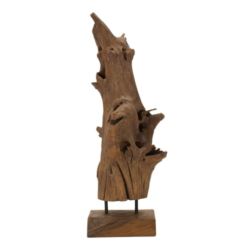 Az egyedi és megismételhetetlen újrahasznosított tikfa szobor megragadja az ősi fa esszenciáját, élettel és történelemmel lüktető műalkotássá alakítva azt. A törzs minden szemcse és tökéletlensége tisztelgés a természet előtt, amely a kézműves keze által