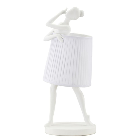 Gyanta asztali lámpa táncos formájú. Komplett fehér szövet lámpabúrával. Gyanta asztali lámpa táncos formájú. Komplett fehér szövet lámpabúrával.