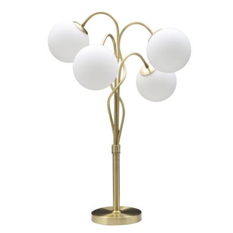 fényű arany fém asztali lámpa átlátszatlan üveggömbökkel. Alakját kecses szövés jellemzi. Álló, asztali, fali és mennyezeti lámpák! Gömbökkel és arany bevonattal a Glamy vonal lágy és határozottan csillogó fényt kölcsönöz szobájának! fényű arany fém as