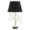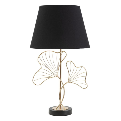 Asztali lámpa arany fémből, talppal és lámpaernyővel fekete szövetből. Az elegáns dekoráció a leveleket idézi. Az arany és a fekete egyesülése tökéletes kontrasztot hoz létre, amely bármilyen helyiségbe illeszkedik. Asztali lámpa arany fémből, talppal