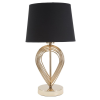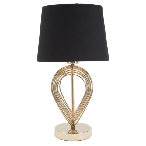 Asztali lámpa arany fémből, fekete szövet lámpaernyővel. Az egyszerű és elegáns alap kidolgozása, valamint a fekete és az arany kontrasztja finomságot kölcsönöz minden helyiségnek. Asztali lámpa arany fémből, fekete szövet lámpaernyővel. Az egyszerű és