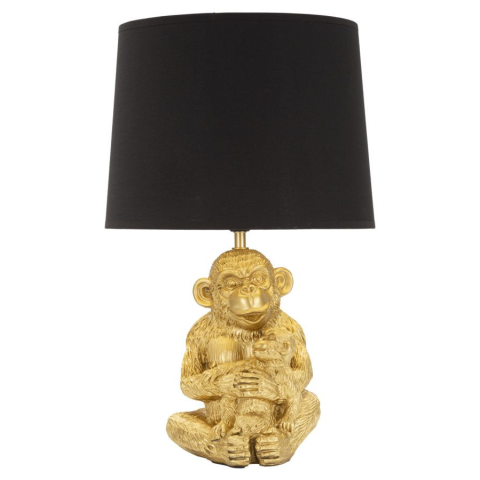 Arany ülőmajom alakú asztali lámpa fekete szövet búrával Arany ülőmajom alakú asztali lámpa fekete szövet búrával