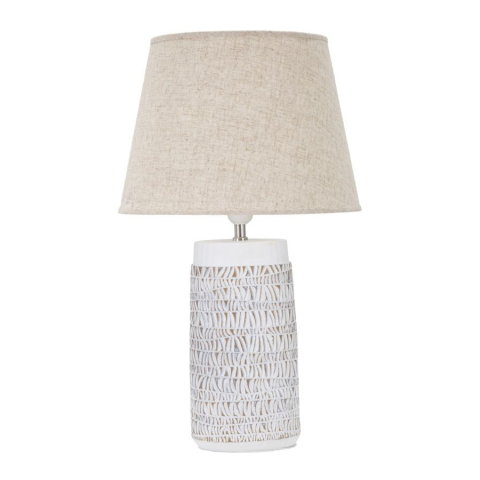Gyanta asztali lámpa, elegáns geometriai formájú betétekkel. Bézs szövet lámpaernyővel kiegészítve. Gyanta asztali lámpa, elegáns geometriai formájú betétekkel. Bézs szövet lámpaernyővel kiegészítve.