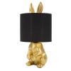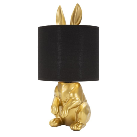 Arany nyúl formájú asztali lámpa fekete szövetbúrába rejtve. Arany nyúl formájú asztali lámpa fekete szövetbúrába rejtve.