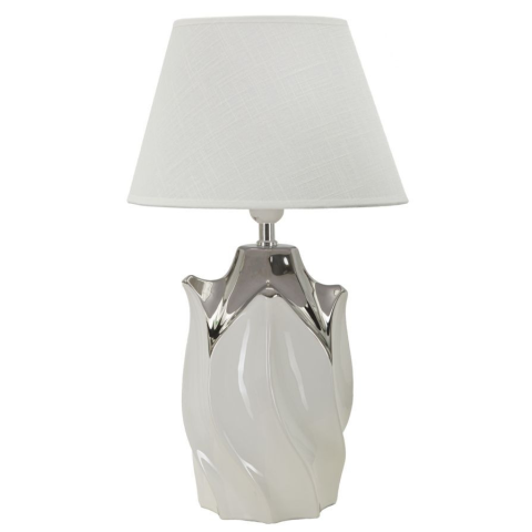 Fehér és szürke kerámia lámpa egyszerű és elegáns kivitelben. Komplett fehér szövet lámpabúrával. Fehér és szürke kerámia lámpa egyszerű és elegáns kivitelben. Komplett fehér szövet lámpabúrával.