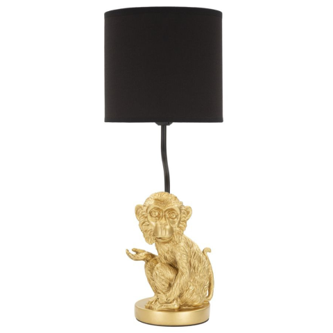 Arany ülőmajom alakú asztali lámpa fekete szövet búrával Arany ülőmajom alakú asztali lámpa fekete szövet búrával