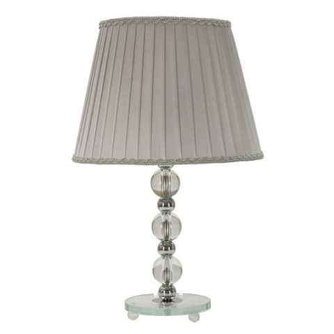 Elegáns asztali lámpa ezüst fémből és üvegből. Szürke anyagból készült lámpaernyővel, sötétszürke bevonattal. Elegáns asztali lámpa ezüst fémből és üvegből. Szürke anyagból készült lámpaernyővel, sötétszürke bevonattal.
