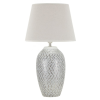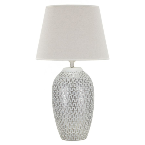Gyanta asztali lámpa elegáns geometriai díszítéssel, domborműben. Komplett fehér szövet lámpabúrával. Gyanta asztali lámpa elegáns geometriai díszítéssel, domborműben. Komplett fehér szövet lámpabúrával.
