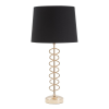 Asztali lámpa arany fémből, fekete szövet lámpaernyővel. Az egyszerű és elegáns alap kidolgozása, valamint a fekete és az arany kontrasztja finomságot kölcsönöz minden helyiségnek. Asztali lámpa arany fémből, fekete szövet lámpaernyővel. Az egyszerű és
