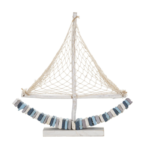 Fából készült vitorlás szobor talppal. A vitorla szövethálóból, míg a hajótest kis fa tiplikből készült. Fából készült vitorlás szobor talppal. A vitorla szövethálóból, míg a hajótest kis fa tiplikből készült.