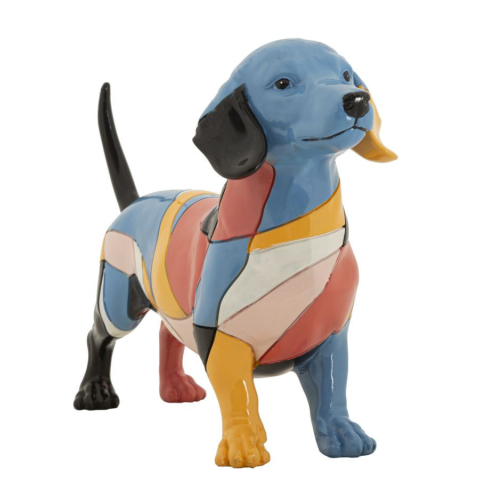 Élénk tacskókutya szobor élénk színekkel, élénk árnyalatokkal ragadja meg a figyelmet, a színes részletek kiemelik a fajta élénkségét és energiáját. Élénk tacskókutya szobor élénk színekkel, élénk árnyalatokkal ragadja meg a figyelmet, a színes részlet