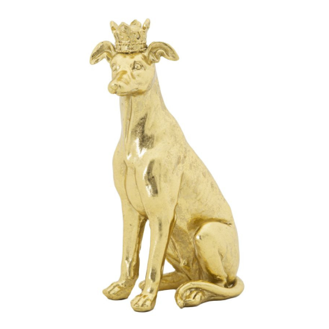 Arany ülő kutyaszobor elegáns koronával Arany ülő kutyaszobor elegáns koronával