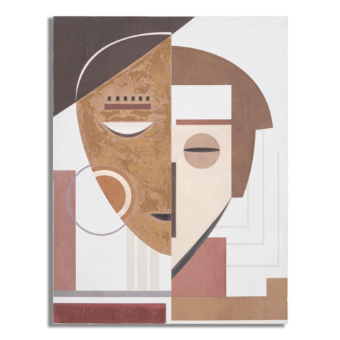 Vászonra festve, fa kerettel, arcot ábrázolva, absztrakcionizmus és kubizmus ihlette designnal. A meleg színek tökéletesen illeszkednek minden típusú bútorhoz. Vászonra festve, fa kerettel, arcot ábrázolva, absztrakcionizmus és kubizmus ihlette designn