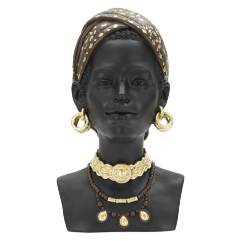 Női fej alakú szobor fejdísszel és ékszerekkel, melyeket a primitív törzsek hagyományai ihlettek. Női fej alakú szobor fejdísszel és ékszerekkel, melyeket a primitív törzsek hagyományai ihlettek.