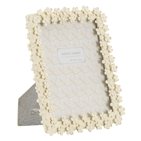 Téglalap alakú szabadon álló műgyanta keret kis virágkészletből álló kialakítással. Vízszintesen és függőlegesen is elhelyezhető. A fénykép mérete 15x20 cm. Téglalap alakú szabadon álló műgyanta keret kis virágkészletből álló kialakítással. Vízszintese