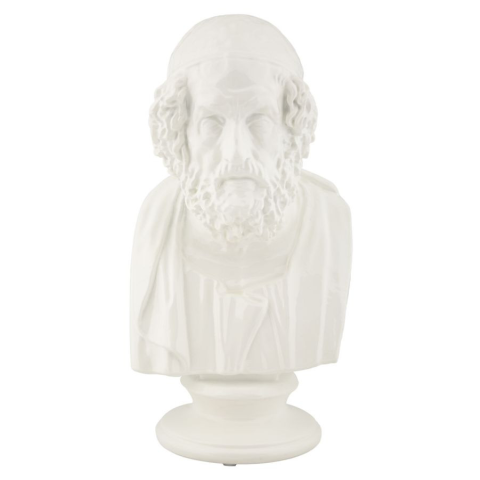 Elegáns fehér mellszobor, amely egy bölcs öregembert ábrázol Elegáns fehér mellszobor, amely egy bölcs öregembert ábrázol