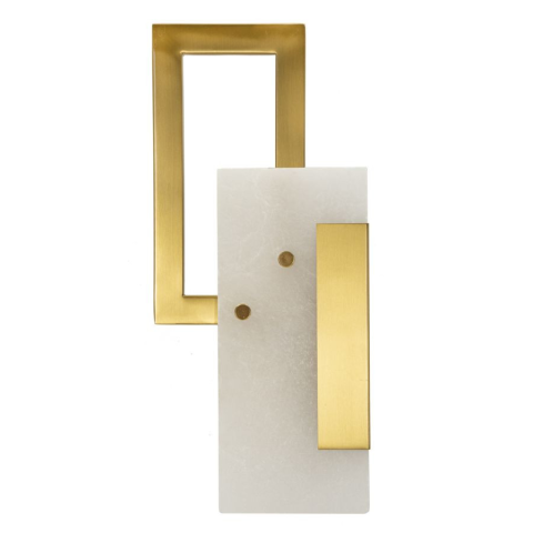 Fali lámpa arany fémből és szatén üvegből, geometrikus és szabályos formával. Fali lámpa arany fémből és szatén üvegből, geometrikus és szabályos formával.