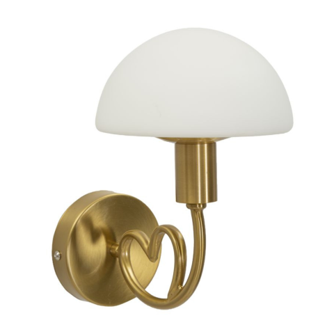 Arany fém fali lámpa elegáns szívvel és matt fehér üveg lámpabúrával. Arany fém fali lámpa elegáns szívvel és matt fehér üveg lámpabúrával.