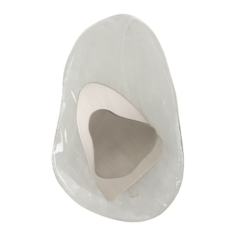 Fali lámpa fényponttal ezüst fémből és üvegből, szabálytalan alakú, füstfelhőt idéző díszítésekkel. Fali lámpa fényponttal ezüst fémből és üvegből, szabálytalan alakú, füstfelhőt idéző díszítésekkel.