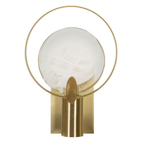 Fali lámpa arany fémből és üvegből füstölt hatású, egyszerű és magával ragadó geometriai kialakítással. Fali lámpa arany fémből és üvegből füstölt hatású, egyszerű és magával ragadó geometriai kialakítással.