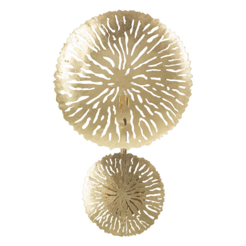 Aranyozott fém fali lámpa 1 fényponttal. A dizájn a természetet idézi. A glam stílus az elegáns és extravagáns részleteket ötvözi. Tökéletes, hogy egy kis fényt és eleganciát adjon a csillogó hangulatának. Aranyozott fém fali lámpa 1 fényponttal. A diz