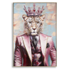 Rózsaszín tónusú vászon festmény arany fémkerettel és fa kerettel. Királykoronát viselő leopárd, elegáns és királyi stílusban, tökéletes minden környezetet egy csipetnyi fenséggel gazdagítani. Alkalmazásokkal megkönnyebbülésben. Rózsaszín tónusú vászon