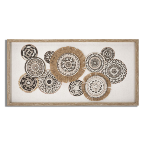 Vászonpanel elegáns, domborműves dekorációkkal gazdagított kerettel, amelyek meleg és körülölelő tónusú geometrikus motívumokat alkotnak. Vászonpanel elegáns, domborműves dekorációkkal gazdagított kerettel, amelyek meleg és körülölelő tónusú geometriku