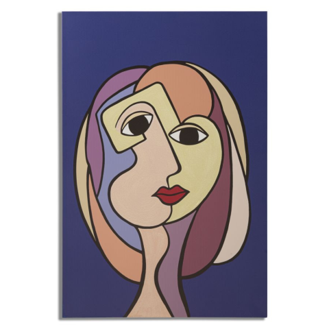 Vászonra festett nyomat fa kerettel, kubizmusra utaló dizájnnal és élénk színekkel Vászonra festett nyomat fa kerettel, kubizmusra utaló dizájnnal és élénk színekkel
