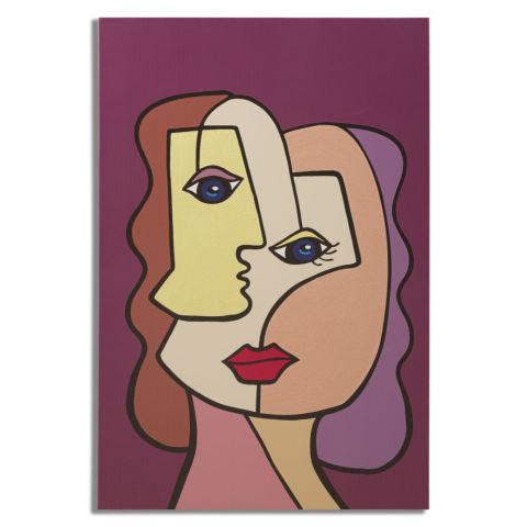 Vászonra festett nyomat fa kerettel, kubizmusra utaló dizájnnal és élénk színekkel Vászonra festett nyomat fa kerettel, kubizmusra utaló dizájnnal és élénk színekkel