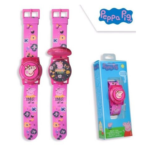 Peppa malac digitális karóra felnyitható tetővel. A teteje nyomásra világít. Egyedi csomagolása miatt ajándéknak is kitünő választás.