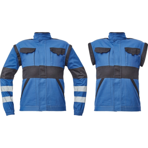MAX NEO RFLX kabát royalkék 44 • férfi cipzáras munkakabát levehető újakkal • 2 első zseb • 2 mellzseb • megerősítés a váll és könyök részeken • rugalmas mandzsetta és alsó derékszegély • fényvisszavető csíkok az ujjakon és a kabát hátán, anyag: 100% p