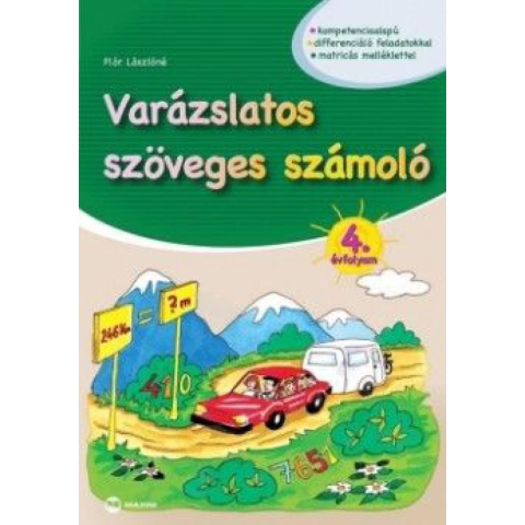 A Varázslatos szöveges számoló 4. évfolyam című gyakorlófüzet hétköznapi tapasztalatokra építve segíti a szöveges matematika feladatok megoldásának gyakorlását. A feladatok többsége egy család külföldi utazása köré épül, így azok megoldása közben érdekes úti kalandokat ismerhetnek meg a gyerekek. A feladatok önállóan is megoldhatóak, de lehetőség van páros és csoportmunka elvégzésére is. Egyes feladatok helyes megoldása esetén a diákok matricát ka