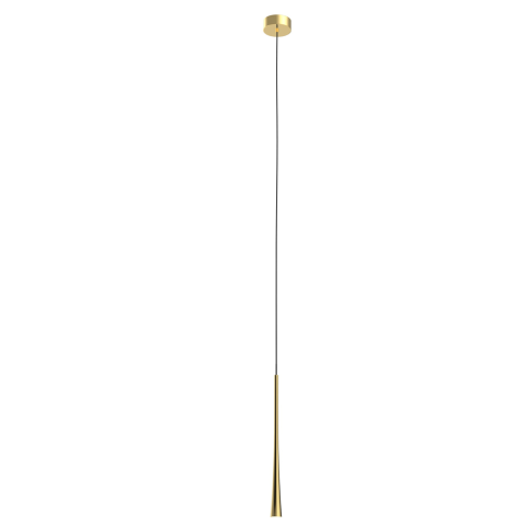 A COFFEE függesztett lámpa karcsú, letisztult formájával elegáns és modern kiegészítője lehet bármely enteriőrnek. Hosszú, tölcsérszerű lámpateste fókuszált fényt biztosít, így ideális pultok, bárasztalok vagy étkezőasztalok megvilágítására. Aranyszínű ki..